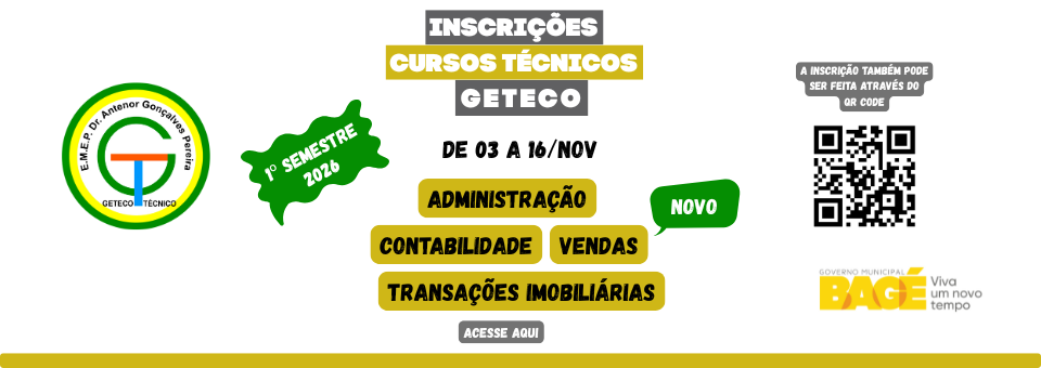 URL https://docs.google.com/forms/d/e/1FAIpQLSfTYDOfH2nH0kcLntQvQYUSnNyNTyCphJbUNfND-Giix_HcgA/viewform Imagem Desktop Informe uma imagem para ser visualizada no desktop. Recomendado utilização uma imagem na proporcão de 3:1. Ex 1280x590px. Descrição para Desktop Caso preenchido, este valor será visualizado na versão desktop do Carrossel. Imagem Tablet Informe uma imagem para ser visualizada no Tablet. Recomendado utilização uma imagem na proporcão de 16:9. Ex 1280x720px Sem imagem Utilizar Título e Descrição do Desktop para Tablet não Título para Tablet Caso preenchido, este valor será visualizado na versão tablet do Carrossel. Descrição para Tablet Caso preenchido, este valor será visualizado na versão tablet do Carrossel. Imagem Celular Informe uma imagem para ser visualizada no celular. Recomendado utilização uma imagem na proporcão de 4:3. Ex 800x600px. Sem imagem Utilizar Título e Descrição do Desktop para Celular não Título para Celular Caso preenchido, este valor será visualizado na versão celular do Carrossel. Descrição para Celular Caso preenchido, este valor será visualizado na versão celular do Carrossel. Configurações Nome curto Esse nome será exibido na URL. inscricoes-para-o-1o-semestre-de-2026-geteco-tecnico