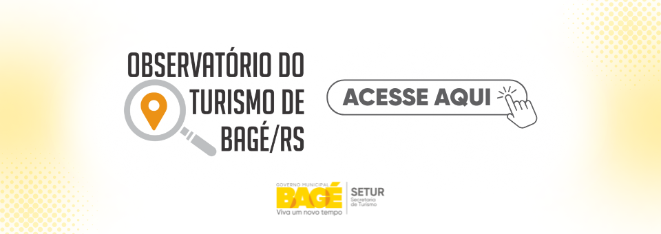 URL https://www.bage.rs.gov.br/unidades-administrativas/setur-1/observatorio-do-turismo Imagem Desktop Informe uma imagem para ser visualizada no desktop. Recomendado utilização uma imagem na proporcão de 3:1. Ex 1280x590px. Descrição para Desktop Caso preenchido, este valor será visualizado na versão desktop do Carrossel. Imagem Tablet Informe uma imagem para ser visualizada no Tablet. Recomendado utilização uma imagem na proporcão de 16:9. Ex 1280x720px Sem imagem Utilizar Título e Descrição do Desktop para Tablet não Título para Tablet Caso preenchido, este valor será visualizado na versão tablet do Carrossel. Descrição para Tablet Caso preenchido, este valor será visualizado na versão tablet do Carrossel. Imagem Celular Informe uma imagem para ser visualizada no celular. Recomendado utilização uma imagem na proporcão de 4:3. Ex 800x600px. Sem imagem Utilizar Título e Descrição do Desktop para Celular não Título para Celular Caso preenchido, este valor será visualizado na versão celular do Carrossel. Descrição para Celular Caso preenchido, este valor será visualizado na versão celular do Carrossel. Configurações Nome curto Esse nome será exibido na URL. observatorio-do-tursmo-de-bage-rs